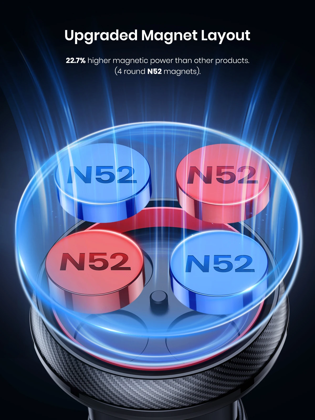?6 ímãs N52 atualizados? Versão atualizada!Este suporte para telefone para carro pode carregar até 1500g (6 * IPhone 14 Pro Max).evite que seus telefones plus size ou pesados caiam.Observação: 1.A placa de metal deve ser usada em qualquer dispositivo.